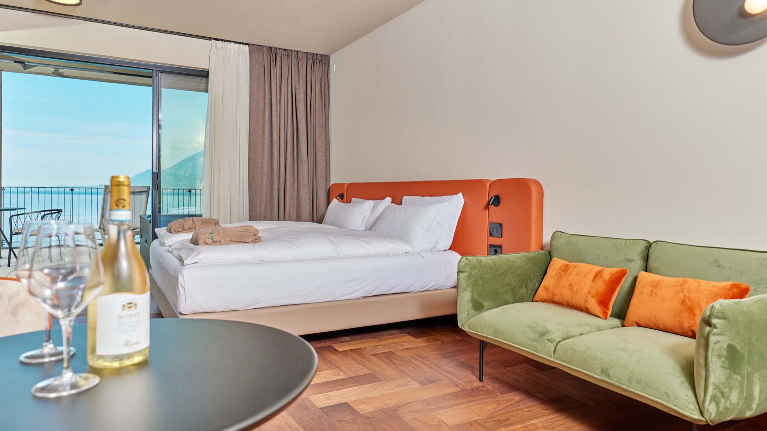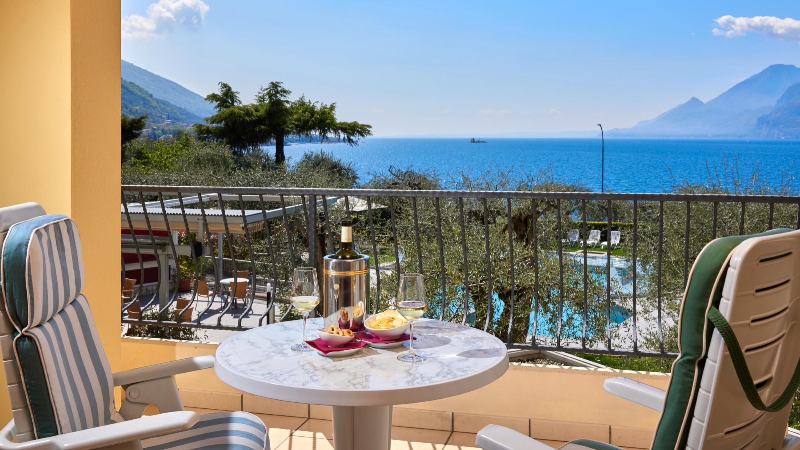 Hotel Baia Verde is located just a few kilometres from the centre of Malcesine, one of the most charming towns on the lake. With its rocky spur that rises imperiously from the water, home to the towering castle that stands guard over the medieval historic centre, the town enchants visitors with its cobbled lanes and squares, colourful shops, workshops, restaurants, osterias, historic houses, and picturesque views of the lake. The landscape is incredibly beautiful: Malcesine is framed by the sparkling waters of Lake Garda that change colour from the white of the waves to the blue of the sky, from the silver of the moon to the gleaming, warm gold of summer sunsets.